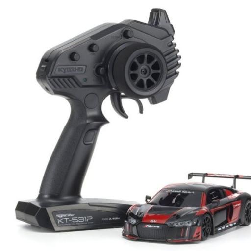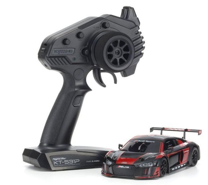 Die Mini Z RWD werden als Readysets mit dem neuen Sender KT-531P ausgeliefert. Dieser Drehknopfsender hat natuerlich alle wichtigen Features wie Steuertrim, Gastrim, Dual Rate, Led Kontroll Funktion, Moosgummisteuerrad etc.